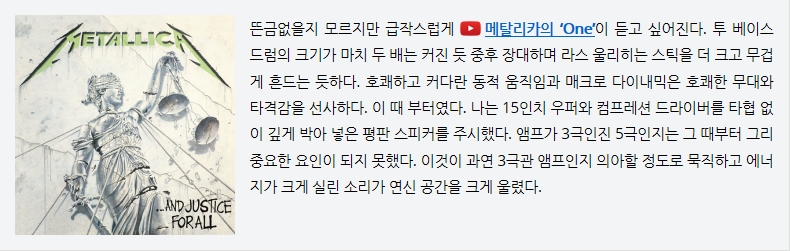 ½Ãû Áß°£¿¡ º» ¾ÚÇÁ°¡ 3±Ø°üÀÓÀ» Àذí À½¾Ç¿¡ ÁýÁßÇÒ ¼ö ÀÖ¾ú´ø ÀÌÀ¯´Â ¹«¾ùº¸´Ù 3±Ø°üÀ» »ç¿ëÇÑ ¾ÚÇÁµé¿¡¼ ÀϰüÀûÀ¸·Î ¹ß°ßµÇ´Â ¿Ö¼ÒÇÑ Àú¿ªÀÌ ¹ß°ßµÇÁö ¾Ê¾Æ¼´Ù. Áö·¹ ¼±ÀÔ°üÀ» °®°í ´É·üÀÌ 94dB ³ª µÇ´Â ÆòÆÇÀ» ¼±ÅÃÇßÁö¸¸ ±â¿ì¿¡ Áö³ªÁö ¾Ê¾Ò´Ù. ¹°·Ð ¼ö¸¸ºÒ ´ë ¹ÐÆóÇü ½ºÇÇÄ¿¸¦ ¸ÅÄªÇØ¼ µéÀ¸¶ó´Â ¾ê±ä ¾Æ´ÏÁö¸¸ ºÐ¸í º¸ÆíÀû 3±Ø°üÀÇ ¸ÅĪ ¹üÀ§¸¦ ³Ñ¾î¼´Â ¾ÚÇÁ´Ù. ´Ù¸¸ ³ª´Â ÃÖ±Ù Áý¿¡¼ »ç¿ëÇϴ ij¸® 300B ¿¡ ÀåÂøÇß´ø ½Ç¹Ù´Ï¾Æ¿Í RCA, ±×µµ ¾Æ´Ï¸é ÅÖ¼Ö º¹°¢ 6SN7ÀÌ¶óµµ ¹Ù·Î °¡Áö°í ¿Í ±³Ã¼Çغ¸°í ½Í¾ú´Ù. ±×¸¸Å º»ÀÛÀº °øÀå Ãâ°í½Ã ÀåÂøµÈ Áø°ø°ü¿¡¼ ¹þ¾î³ª ¸î ¹è°í ´õ »©¾î³ ¼Ò¸± ³¾ ¼ö ÀÖ´Â ÀáÀç·ÂÀ» °¡Áö°í ÀÖ´Ù.