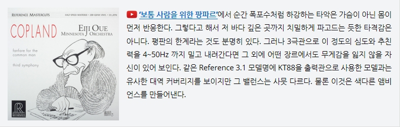 ³ª´Â ½ÖµÕÀÌó·³ ÅÂ¾î³ µÎ Á¾·ùÀÇ Reference 3.1 Áß Çϳª¸¦ ÅÃÇ϶ó¸é ÁÖÀú ¾øÀÌ 300B¸¦ ¼±ÅÃÇÒ °ÍÀÌ´Ù. Ç®·¹ÀÎÁö³ª ÆòÆÇ ¶Ç´Â ±¸°æÀÌ Å©°í ´É·üÀÌ ÁÁÀº ³Ë³ËÇÑ ½ºÇÇÄ¿¸¦ Çϳª »ç¼ Æ÷³ë´Ü¿¡ ÅÏÅ×À̺íÀ» ¿¬°áÇϰڴÙ. ½Â¾ÐÀ» ºÙ¿©µµ ÁÁ°í ¾Æ´Ï¾îµµ »ó°ü¾ø´Ù. ÃÖ±Ù Ä÷º¼ÇÇÑ 50~60³â´ë ÀçÁî LP µéÀ» ¸¶¸£°í ´âµµ·Ï µè°í ½Í´Ù. 300B ÀÇ À½»öÀº ´Ù¸¥ ¹«¾ùº¸´Ù À½¾ÇÀ» ´ç±â°Ô ¸¸µå´Â µ¶º¸ÀûÀÎ ¸Å·ÂÀ» °¡Á³´Ù.